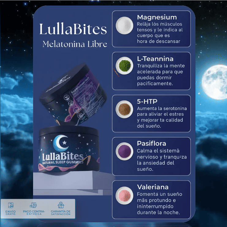 No. LullaBites™ está formulado sin melatonina, sin azúcar, sin gluten, y es vegano. Utiliza ingredientes naturales que han sido usados tradicionalmente para favorecer la relajación.