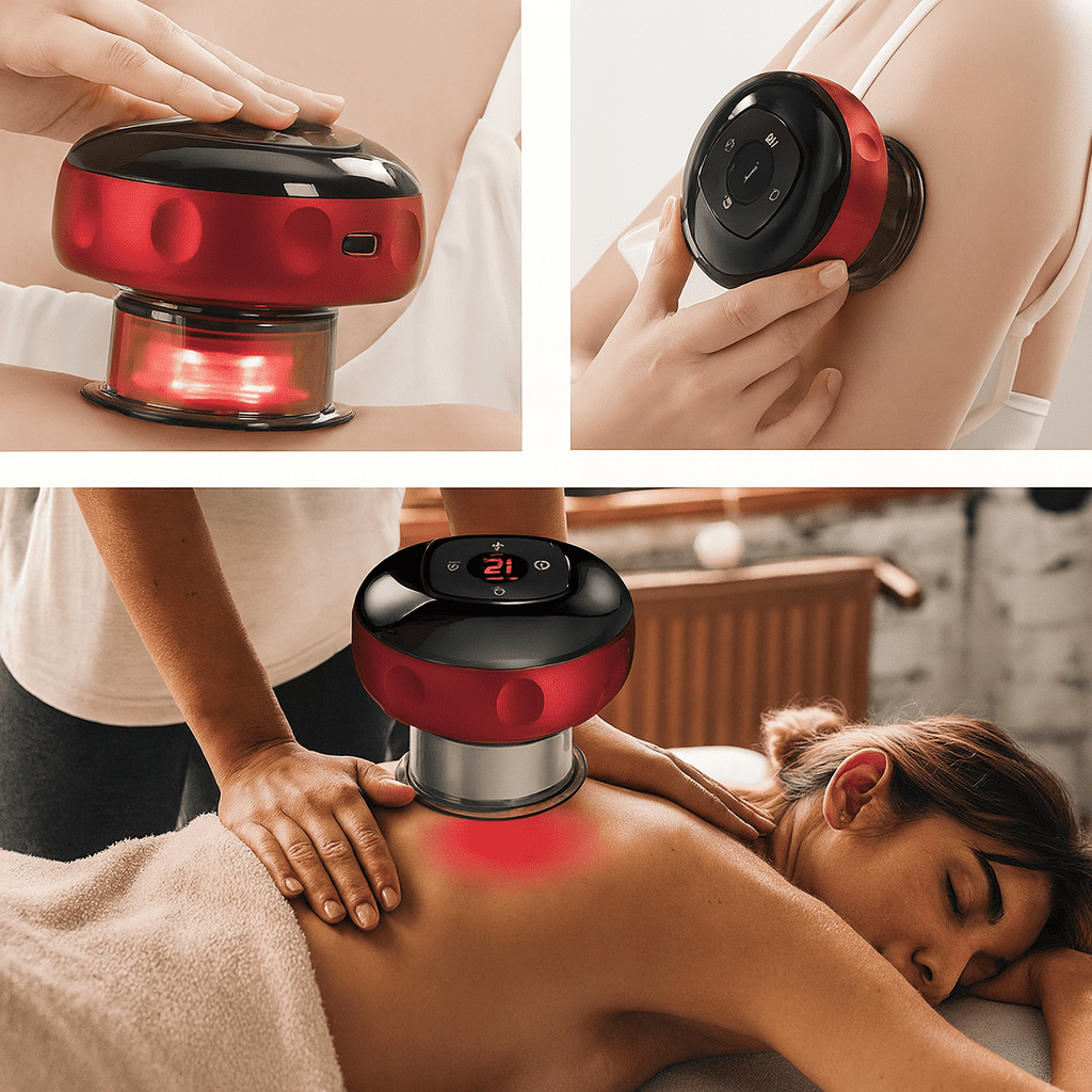 ✅SkinTonic™ combina ventosas inteligentes, masaje profundo de presión negativa, raspado terapéutico, calor y luz roja…